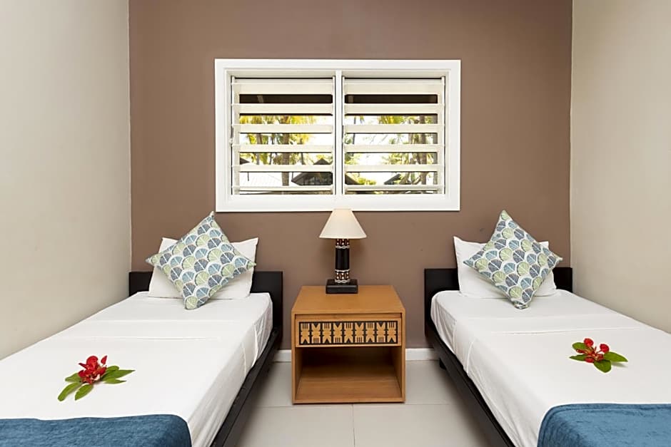These ground level units are located in quad bungalows. They feature an open room with a queen size bed and a lounge with two single beds. Some rooms are interconnecting and all rooms have garden views. Please note that the price is based on 2 adults and 2 children. Maximum occupancy is 2 adults and 3 children (see Hotel Policies).