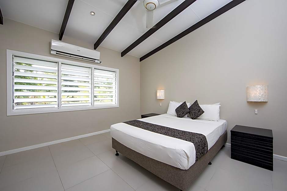 These ground level units are located in quad bungalows. They feature an open room with a queen size bed and a lounge with two single beds. Some rooms are interconnecting and all rooms have garden views. Please note that the price is based on 2 adults and 2 children. Maximum occupancy is 2 adults and 3 children (see Hotel Policies).